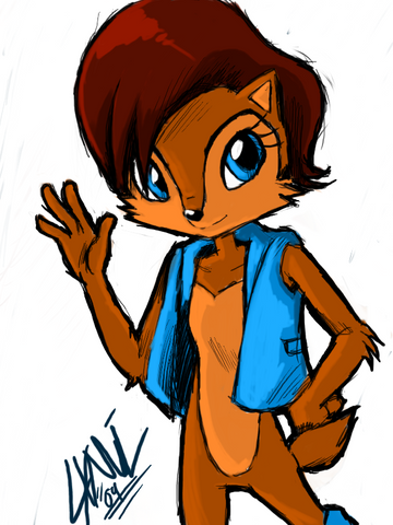 The famous Sally Acorn! Sonic's girlfriend and leader of the Knothole Freedom Fighters (though it should be noted Sonic was also called the leader, so I guess they were both the leaders of the Freedom Fighters). At least in the Sonic series known as SatAM. I felt this pic, although old (December 2000), deserved to be here. Enjoy!See another pic I drew of Sally: