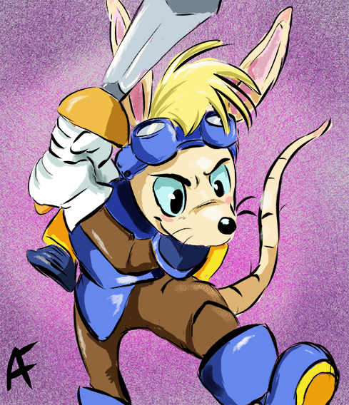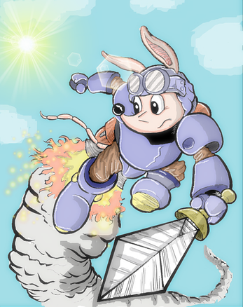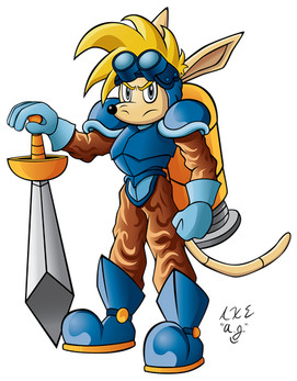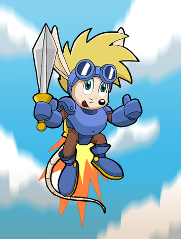 Sparkster's probably my favorite video game character of all time. He's cute, cool, and he's an opossum. I heart opossums. I like his face in this picture, really cute.