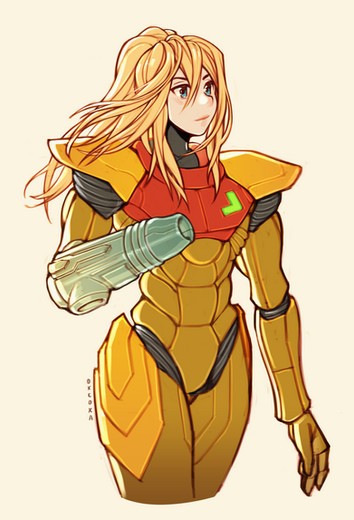 Welcome back indeed! I'm beyond stoked that she's back and you've done a brilliant job capturing that feeling here. Samus has this playful, almost smug, grin as she pulls on her armor in preparation for her latest adventure. The detail on her armor is great and the colors do an excellent job of recreating the atmosphere on her ship. I can't say enough how awesome this piece is!