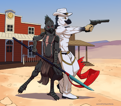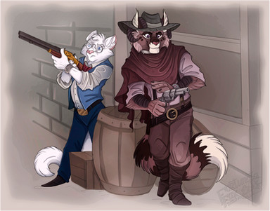 Ashe and BOB from Overwatch in furry form. I chose a coyote for Ashe since one of her main attacks is throwing dynamite much like Wile E. Coyote, which meant BOB had to be a road runner.Related content
