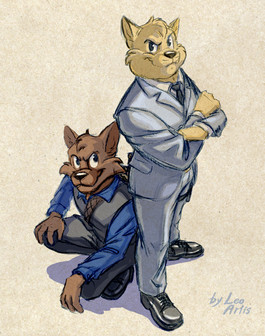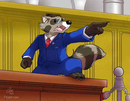 Pheonix was created as a lawyer for Savestate. The first time I drew him his ears were pointed up, but I then realized they should be slicked back to look more like Pheonix Wright's hair in the game.Related content