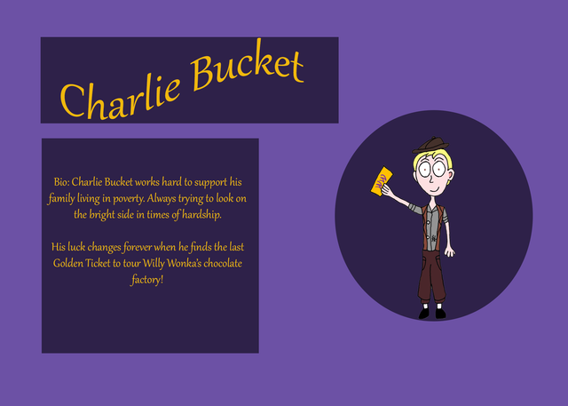 Charlie is probably the happiest boy in the whole world. Well, he does't know it yet, but i'm sure that it is so. Charlie lives in a small dilapidated house on the edge of town, along with his mom and Grandpa Joe. Charlie loved Grandpa Joe so much, because he always told his grandson various interesting stories. One day, Charlie was walking home from school, passing by Wonka's big chocolate factory. There was always a sweet aroma of chocolate and sweets coming from there. When Charlie returned, he greeted his family: his mother, who was cooking cabbage soup (after all, cabbage was the only thing they could afford) and grandpa Joe, who just got back from the toothpaste factory.Charlie: hi everyone!
