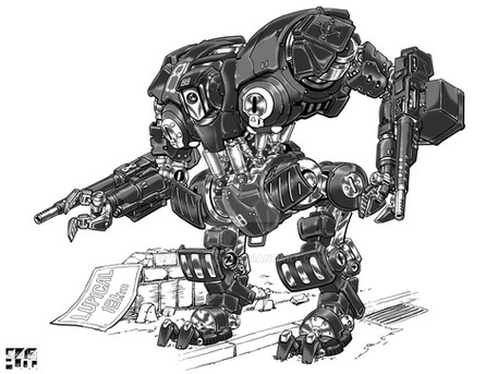 very cool. a little assymetry goes a long way. big bolts are a cool touch too. and the fins on ther shoulders remind me of a fifties hot rod. big fav!