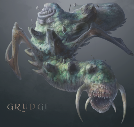 Old character, Scoffin. Early on he had a lot more artificial parts, most of which he tore off. He creates a thick dark poisonous smog that leaks out the open holes in his body and is highly aggressive.