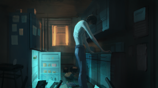 #man #morning #background #cyberpunk #environment #grunge #kitchen