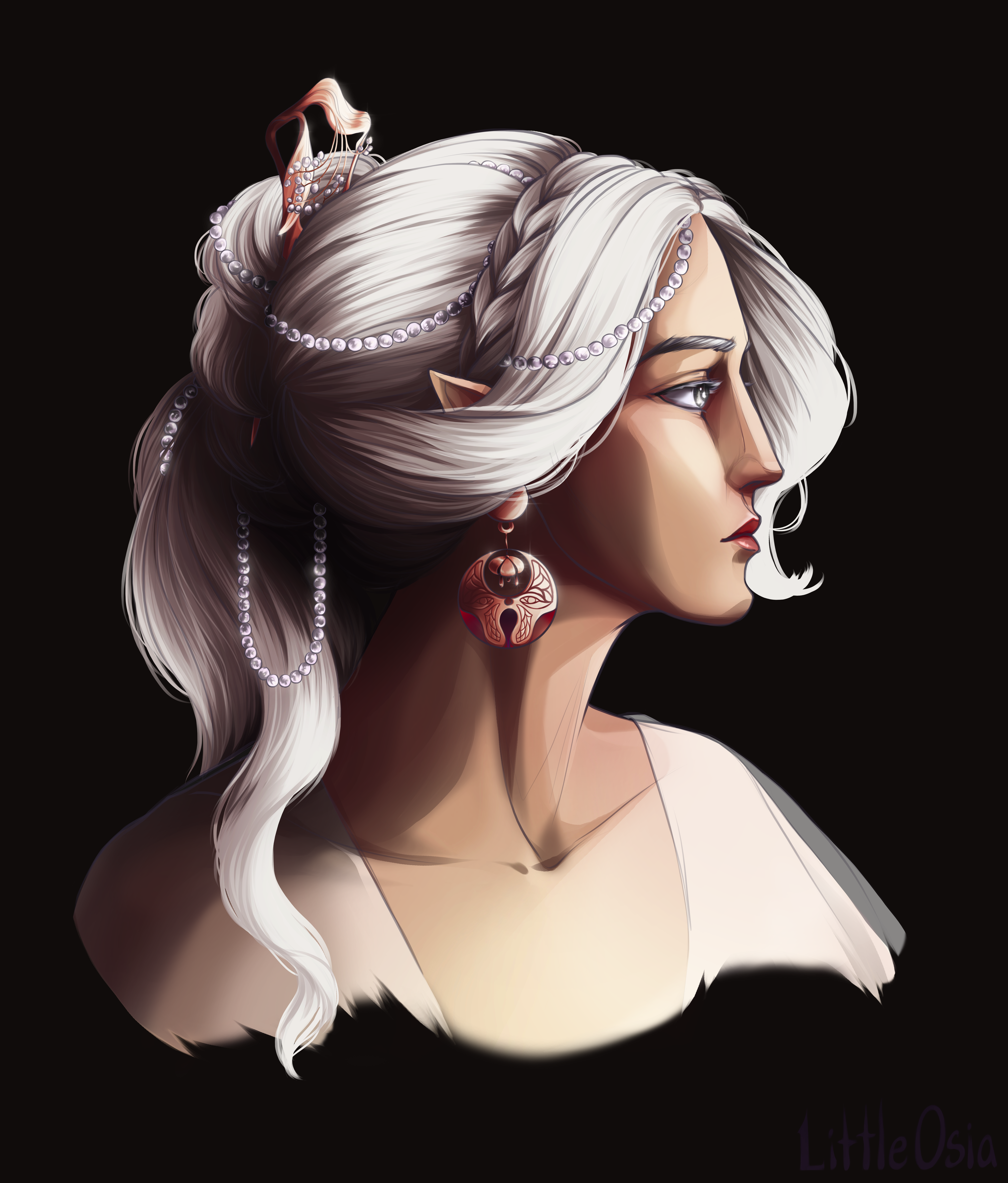 Lovely design, but I can't imagine that an elf would willingly cut his hair, much less shave it...