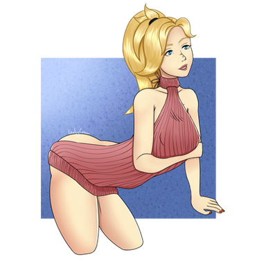 Interesting colouring style! I like how you've used the shine on her hair and the blush to subtly draw attention to her face.
