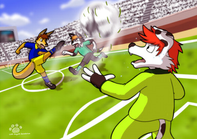 #anthro #ball #boy #cat #dog #football #fox #furry #goal #goalie #goalkeeper #guy #husky #lynx #male #man #soccer