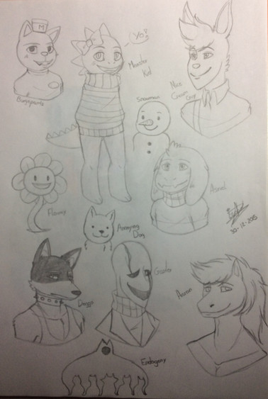 Some Undertale characters! Man I struggled so much with these.. I had no idea wether I wanted to go with my own style or if I should draw them more like the game's sprites.Eventually I went with this, but I'm not truly happy with them to be honest...
