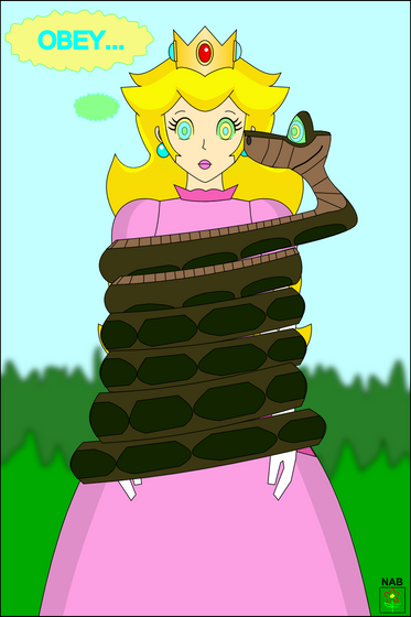 "Hello I was wondering if I could request you draw Princess Daisy from the Mario franchise files.myopera.com/txiongbu/alb… being wrapped up and hypnotized by a snake."Requested by: ~The7thExperiment