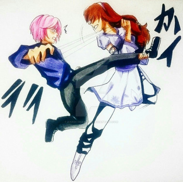 Yeah... They can't get along.... so I decided to draw a scene from the rp when they met.... In a sorta untraditional style....?