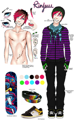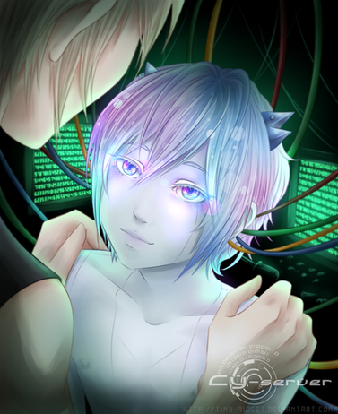 (0-2 years): The first two years of Daemon's life was spend in a laboratory. He was created from scientists in the purple gang, and his purpose was simply just to be some kind of super soldier with a human face. It was a project that had been worked on for nearly 8 years and Daemon was the third prototype – however he was the first one who was capable of learning new things on his own. Back then he had no name, but was just called PX-03. His body was made different from the previous prototypes. Unlike them, Daemon has parts of human insides – such as a part of his brain being real human brain tissue taken from a 25 year old male (because of this he got small breaks of memories from a childhood which he had actually never experienced. Mainly just smaller 'normal' happenings from what in x is considered as a normal childhood). The scientists didn't believe he would get any memories as the brain tissue had been dead – but conserved for half a year by then. Also parts of his insides in the stomach area is partly real human, partly cloned and some of it is just biomass the scientists turned into a replication of human flesh and tissue. His body doesn't hold any blood, but a thin transparent liquid in stead with double the density of water. The battery in his body is sitting where the loungs are in a normal human body, and is connected to a usb port in the back of his head right above the neck. Because of the position of the batteries, he needs to breath to cool them down not to overheat. This also gives his body the temperature of a normal human being.
