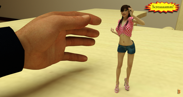hehehe if a woman like this size look down angry and point her finger to me like this i will probably pee on my pants