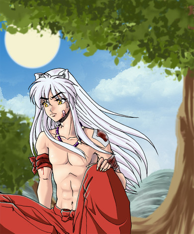 XDDDDDDDDDDD I can't tell you how much I LOVE this picture!!! I was bored in art class (yea i know. How can you be bored in art?) so i drew this smexy hunk of demon XDI think the moon was a bit much but I know has it as my screen saver XD