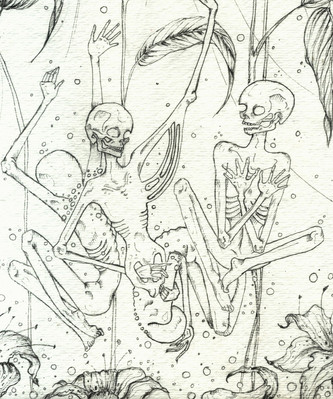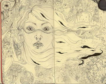India ink, pencil, copic pen, gold leaf, and Mepxy marker on watercolor paper.Crappy photo. This is a big painting, about a food and a half wide. I'm too lazy to get up and check the actual size. Just trust me.