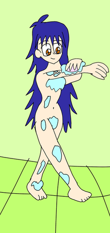*She looks a bit ticked as water drips down her body*