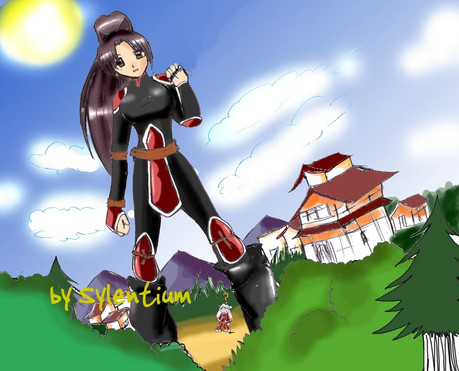 This is the request for he wanted me to draw a Giga Rukia about to eat Earth with a shocked IchigoI really like how this turned out