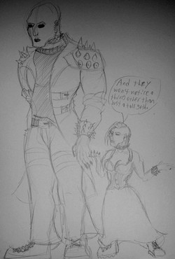 Purple: Jun Hauksson, aka, Professor Hauks. Jun's a villain but only because he chooses to work for supervillains, who are the only people who will fund his research in genetic manipulation. He used to be a professor, but was fired for using school property to conduct unethical experiments. His passion is creating perfect minions using his own DNA mixed with the DNA of his 'husband,' which he carries and delivers himself, to work with him and help his daughter in case something were to happen to him. He also has tampered with his daughter's genes, but only to save her life, and has no clue where her nonhuman traits come from. He's 5'2" and in his late thirties, and is quiet and nervous but comes off seeming grumpy.