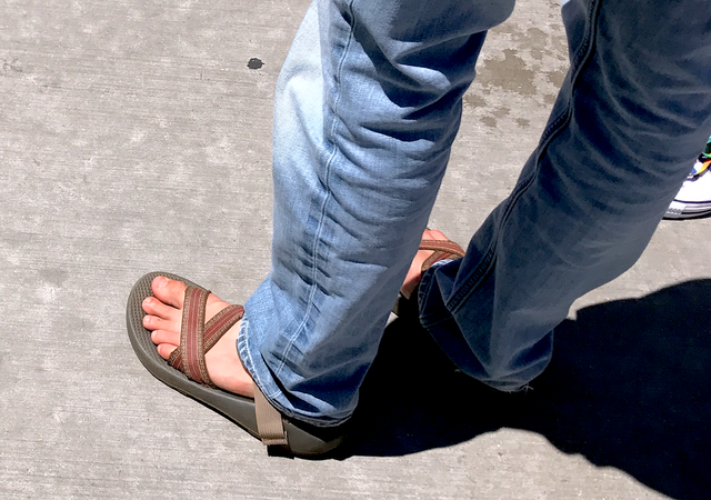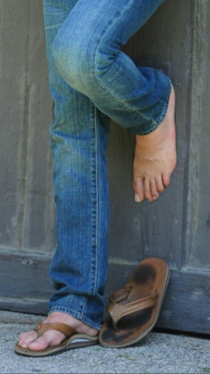 The Poor tiny dude he fell from his friends pocket and landed on his flip flop.The giant in the pic was taken by friend from Photobucket and used with his permission.