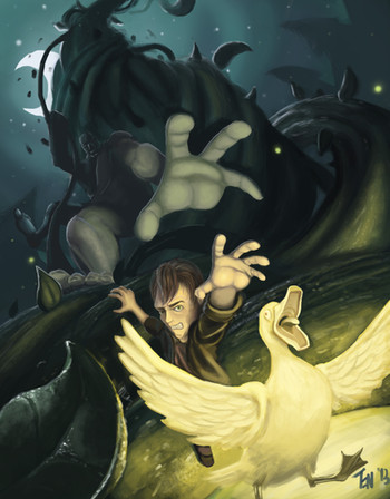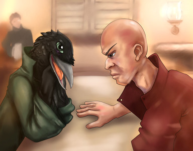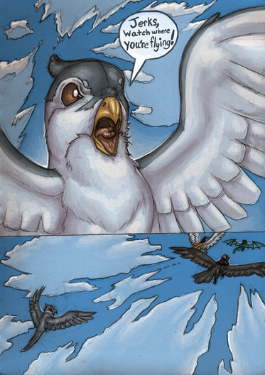 Though they become friends later.... it must be scary to be near that sharp beak and talons! o.o