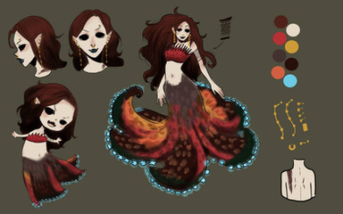 It turns out the boy that found her was part of the House of Sirens. They presented to her a token resembling a bright yellow and red flower, a Gaillardia. She was thoroughly surprised-- How did they know she loved flowers? Their only response was that they “took a good guess” and thought that this would look the best on her. Once she heard the Rules of Myth over and over, she accepted the token and touched it. Immediately, her spirit appeared before her, whispering words of greeting. The red crab-handed lady looked lovely in Ran's eyes-- she almost looked like herself! She named her Ai, or love. Ran could tell that she was going to really love being a part of this house, with this spirit. This could be where she belonged.