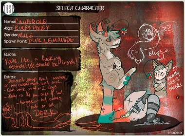 Rolo is usually a very friendly dude that looks out for his pals and those that need help. He's very enthusiastic about the things he loves and always tries to have a good time! His perseverance may be inspiring to some and a bit extreme to others. He trains in his spawn point all the time, trying to become even stronger than he was the day before. Gold Country is the perfect place to do this. He will often spar with Cheat in order to practice, since they are more than happy to help players fight better. It is nearly impossible to sit and do nothing while Rolo is around. He never wants anyone to give up if they have other options. A friend doesn't leave other friends behind! Rolo tries to keep a positive outlook on things, since that's what keeps him going.