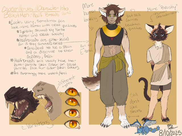 Physical appearance » Rolo is sort of a lion centaur-type creature. He has a thick blonde mane that he sometimes braids holds back somehow (a lot of hairspray needed, definitely) since it gets too wild for his tastes. His ears are round and short, and his eyes are blue with sparkle pupils. (yes, that's a part of the design haahahaha) He's usually sporting some sort of sunglasses. He has normal arms on his torso, but four lion paws to hold the rest of his body. His tail is very thin until you get to a feathery tuft of fur at the end.