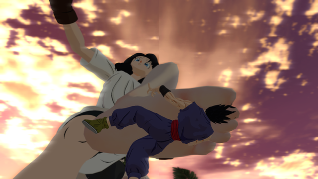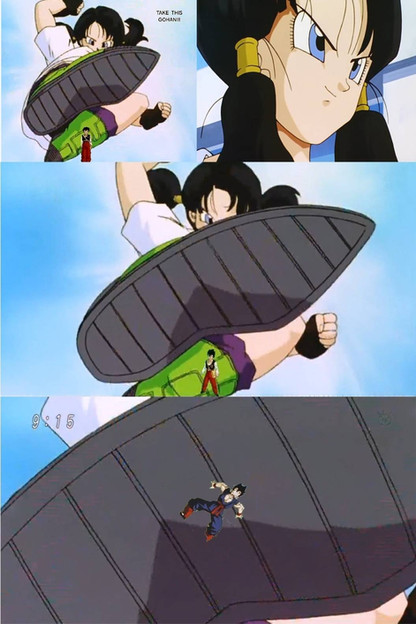 Is it just me or does she look a little annoyed? Also Gohan should totally tell her to turn around and take a seat