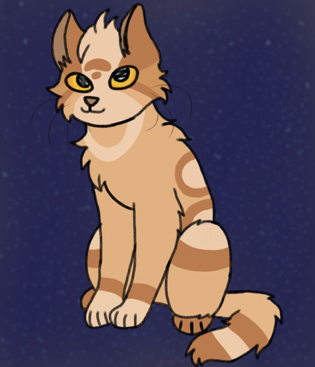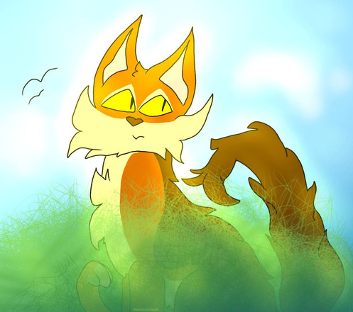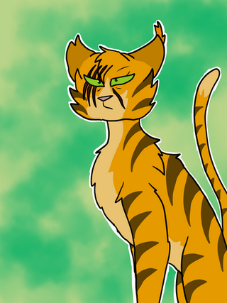 FlamingStep is a large and slim ginger tom with darker face stripes and cold green (green-yellow) eyes. He is always as extremely proud of himself as a rooster of itself. Hes also confident, astute, brawny, very ambitious, protective over his property and staunch to his decisions and vows. He has a “frozen heart” and a “straight spine”. He is the example of a prideful texture. In fact, he can also become really jealous. The proudness for himself came from the fact of how hard he has worked on earning all he could wish for, or, almost all. And some wise words came from his golden mouth: “maybe smart working is a faster way to success and victory, but hard working will make you earn everyone’s respect.”
