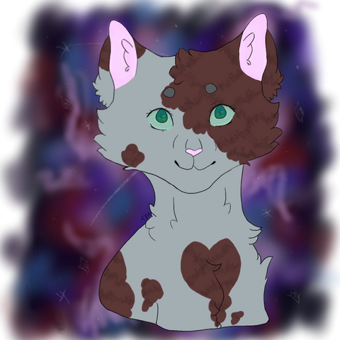 Turtleheart rose her muzzle to the empty sky and opened her mouth to let all of her sadness condense into a loud yell. Tears streamed down her cheeks, falling on the starry carpet and hitting it delicately. Fireblotch rubbed his head against her throat, trying to comfort her. Brokenleap joined the two, as his and Turtleheart’s tails compressed together. Turtleheart rested her head on Brokenleap’s shoulder, still blubbering.