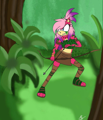 Jus a random idea I pulled from a doodle on a piece of scrap paper.I guess i'll justify it by saying its a alternate reality Amy were she's an amazonian warrior or something. Either that or she's playing jungle billiards and she just dressed for the occasion. Its also influenced a little by the Navi from the movie Avatar.