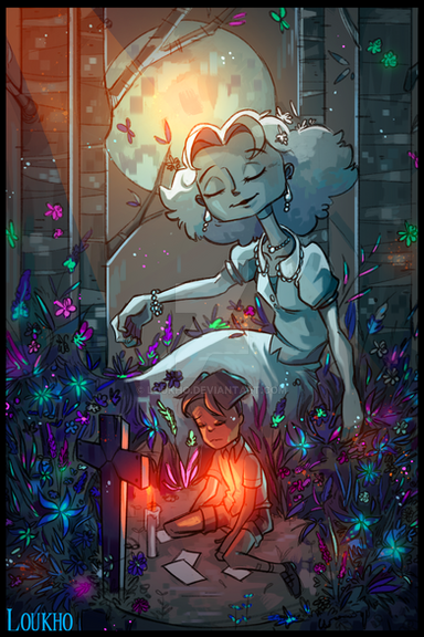 After reading the comments, I see the resemblance to the PietΓ , but tbh I first noticed the similarity to the depiction of the resurrection of Jesus in the Isenheim Altarpiece... Especially because of the fluttering hair and cape(?) and the sun/moon/planet behind Ava. And the colours of course. (Your colours always blow my mind) The connotations with the different pieces are really interesting...