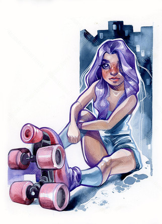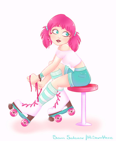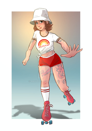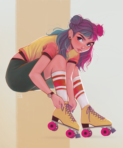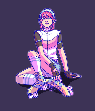 IΒ΄m so in Love with your Artstyle. I really like the character, her design looks so nice! Really really like the combination of the Elf ears/horns/frekels with the Outfit and the Rollerskates <3