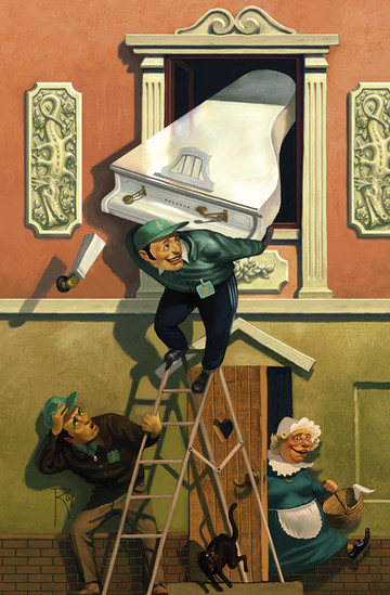 This is absolutely great ! You reinterpret the Scream of Munch so well, with the allusion : the housebreaker hanging the painting. And this is so funny, sweet, but disquieting at the same time ! The layout of the premises is great too, it gives the feeling of the disorder. I am going to add the characters in my favourites !