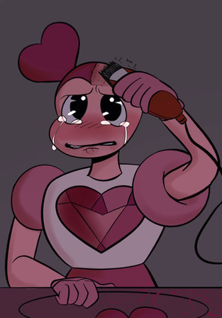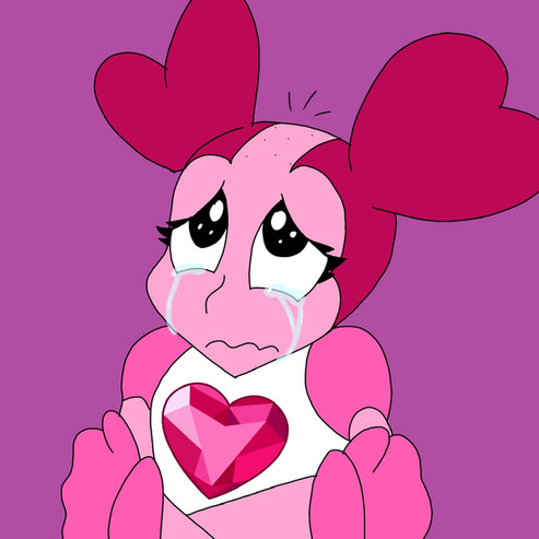 This digital artwork of mine was made on 7/05/2023In this art Spinel from Steven Universe is getting a haircut by yellow floating hair clippers above her and she has an unsure face in the art.