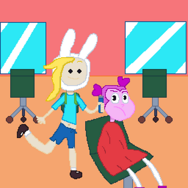This artwork was made on 18th May 2023In this artwork Fionna from Adventure Time is giving Spinel from Steven Universe a fresh new haircut using hair clippers.