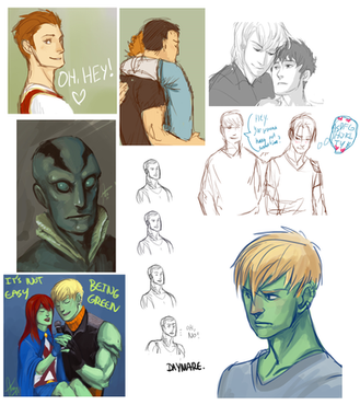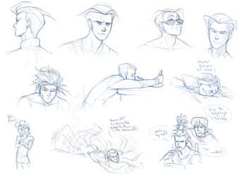 finally put this togetherfrom top left to bottom right we got Daken, Nightcrawler, Human!Starscream, Jason Blood/Etrigan(it was for a friend okay stop judging me), Quentin Quire, Wiccan, Ultimate Reed Richards, Chamber(if his powers were to go out), an OC, David Haller, Hulkling, Galan of Taa(Galactus) and Norrin Radd(The Silver Surfer) from a space pirate au, Sue Storm and Reed Richards being kawaii and G1 Starscream.