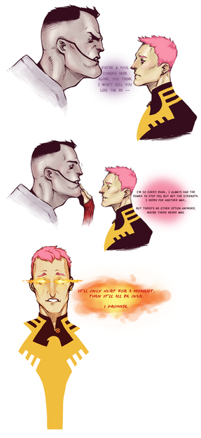 I like your art style, but here...this smoke, those red eyes...