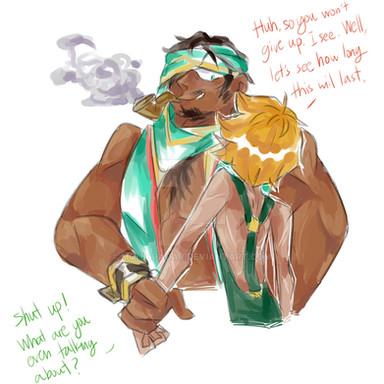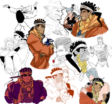 I've drawn some humanized versions of him especially but also sylvia, peepers and emperor awesome these last couple of days :>