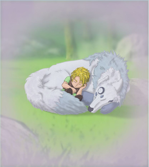 Just a twist on little red riding hood, where she finds the big bad wolf isn't so bad at allThe colors turned out more dull and blue-toned than the picture is in reality, but oh well.