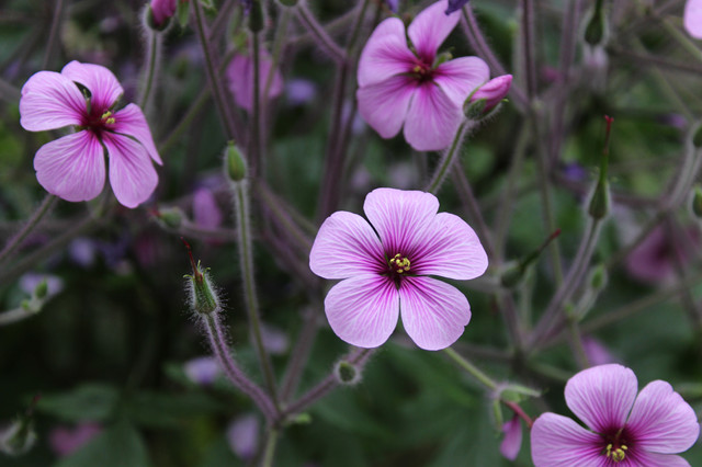 I have the feeling that these flowers are mallows, but they look more delicate than the common mallow...See also another kind of little mallow...