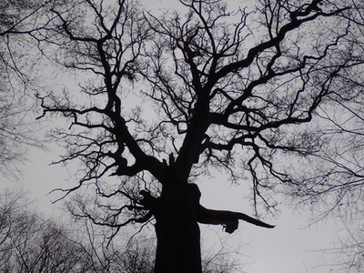 A tree in winter with a nice curious shape.Un arbre en hiver avec une jolie forme curieuse.