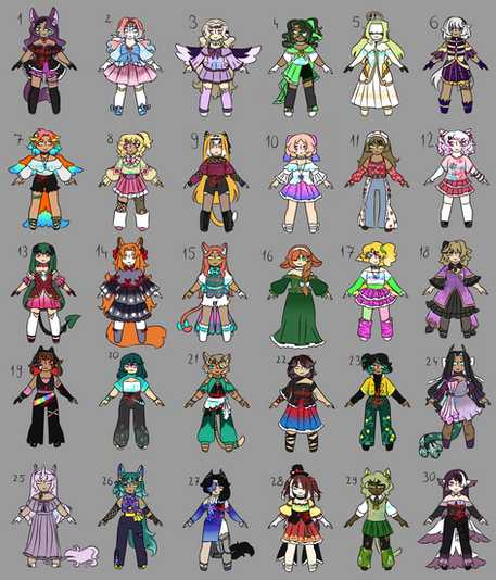Yet another adopt batch lol. I redesigned some two-word-inspired designs I made back in 2019 because...,, lowkey I kinda liked them. Idk if y'all will too but let's seeI'm sorry about the price, I feel bad abt it but I'm trying to crack down on making my art be worth more lmao