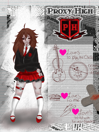 Bio: here is some bio on angie kind. Angie kind used to always be the punching bag of any creature. They were a rare kind of fairy. No fairy ever had living and dead flesh as a body. Let alone bones and needles within them. Scarecrow fairies wings being able to break so easily but to be repaid quickly and just as easy. Killing one was very hard. you could chop off it's head or take out it's heart and the fairy would be alive. Each one had a different spot that would lead to death. After many years of being the punching bags of many fairies and other creatures. The scarecrow fairy stood up for their selves with a bloodbath. Soon becoming rulers or the many fairies that used to kick them down. Each fairy that used to beat many scarecrow fairies were killed in front of everyone as to show to never cross them again. Gore in very kill. Angie was born when the scarecrow fairies ruled. Being expected as a cold hearted murderer. Angie wasn't like that. She would be a bit cold heart but would never kill anyone. she liked the other fairies and how they looked. Her parent tried their best to making her like them. That didn't work though. She kept smiling and showing kindness to others. This angered the other scarecrow fairies very much. They couldn't have a soft after all they went through to be feared and praised like kings and queens. Angie would only ruin that image. The parents tried teaching her how with gore. This made her go a little insane at times. She learned about half breeds. She thought they were cute little dolls with one problem. Thinking that half breeds were broken or not finished. She wanted to fix them but not saw any. So keep being her kind happy self. Giving up her parent made her go to Ellewood Academy to become a proper monster she was meant to be. Just perfect. Just the place to fix up some half breeds. Her body having the main tools to fix them. Her needles. This will be fun for the little fairy.