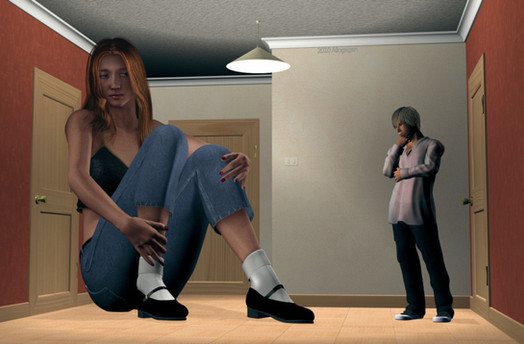 Btw... I love her pose... how she is laying there on her tummy and watch down at him... and in the mirror image, one can see something, she looks like a naughty little beggar... it looks like she's playing a game of cat and mouse... kittenish somehow
