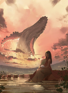 #digital #drawing #fantasy #flying #girl #marine #mountain #paint #painting #photoshop #rain #reflection #scenery #sea #water #whale #alps #emotional #landscape #speedpainting