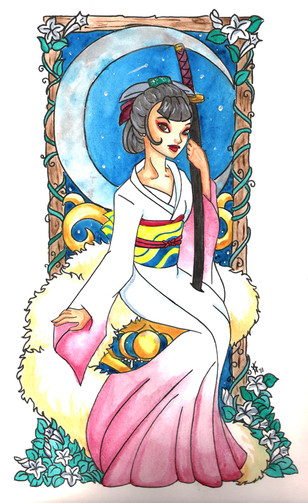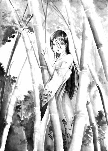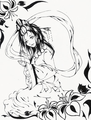 The Subject/Theme of the challenge was "Ink". I tried to make Kagome look as if she was coming out of the painting and slowly becoming alive (the color).