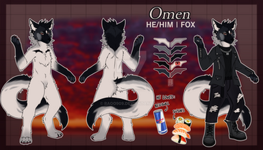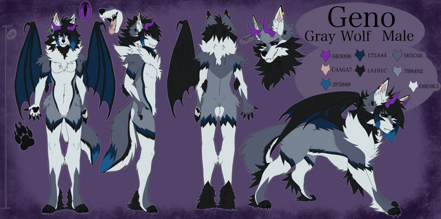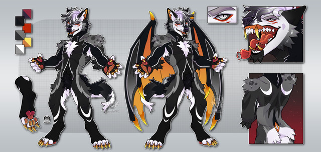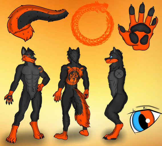 #referencesheet #hybrid #fox #base #black #canine #cross #grey #male #piercings #ref #reference #sfw #sleeve #spots #tattoo #white #wings #hellriver #fire #binxxy