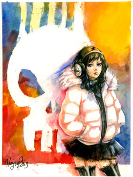 Wow. just wow. I love this. the pose is like she's reaching out for something to take away or wanting to be saved or w.e along with being faded away or drugged somewhere. <3 i also love the colors. alot