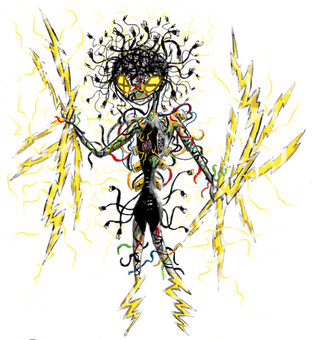 It was all grey, so I used Burn tool to really bring out the black and the shading. I added he red eyes and yaddayaddayadda.